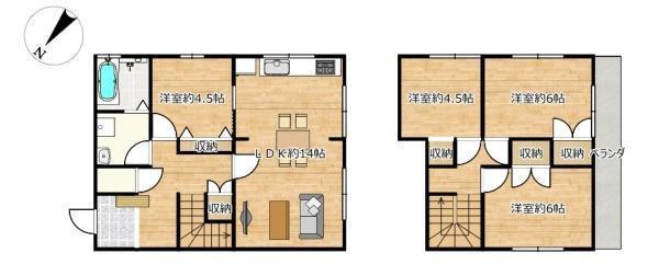 1F L 8.0帖 、1F D 6.0帖 、1F K 4.5帖 、2F 和 4.5帖 、2F 洋 6.0帖 、2F 洋 6.0帖