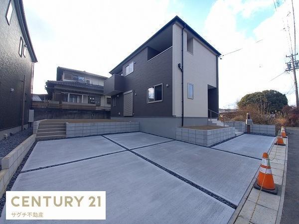 シンプルで落ち着いた外観が印象的です。広々とした駐車スペースも確保されており使い勝手が良さそうです。角地に位置し開放感があります。建物のデザインもモダンで洗練されています。
