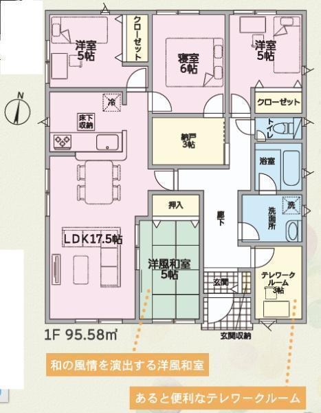 1F LDK 17.5帖 、1F 和 5.0帖 、1F 洋 6.0帖 、1F 洋 5.0帖 、1F 洋 5.0帖