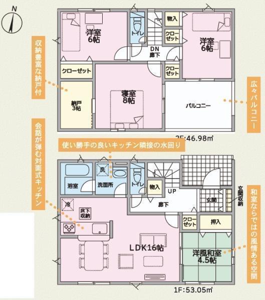 明るい色合いの玄関が空間を広く感じさせます。収納が備え付けられており整理整頓がしやすそうです。段差がはっきりしていてメリハリのある印象です。