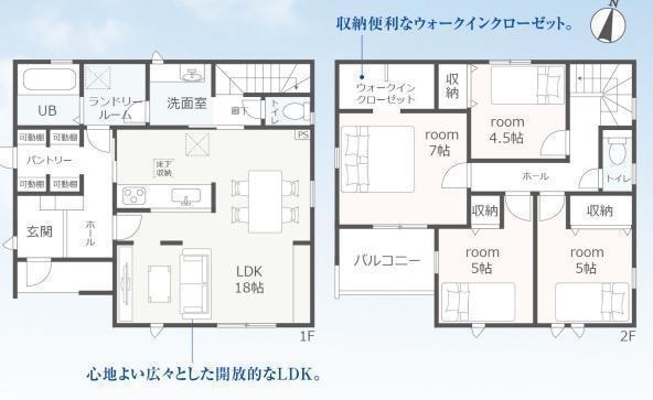 インテリアの映える広々としたリビング18帖収納便利なウォークインクローゼット