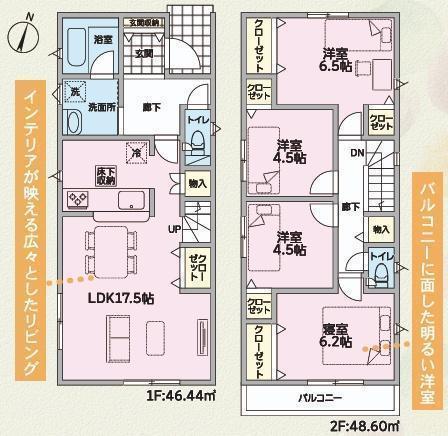 1F LDK 17.5帖 、2F 洋 6.5帖 、2F 洋 4.5帖 、2F 洋 4.5帖 、2F 洋 6.2帖