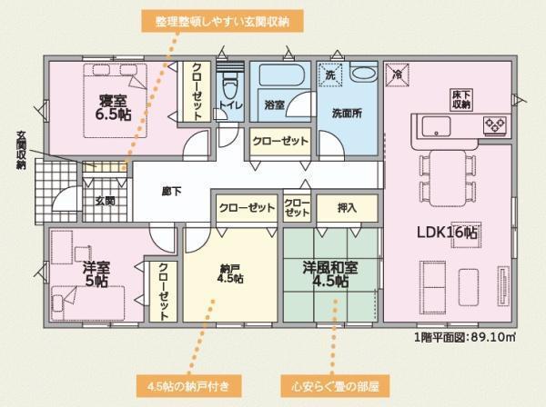1F LDK 16.0帖 、1F 和 4.5帖 、1F S(納戸) 4.5帖 、1F 洋 5.0帖 、1F 洋 6.5帖